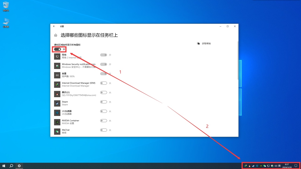 鼠标右击任务栏设置-任务栏-选择哪些图标显示在任务栏上