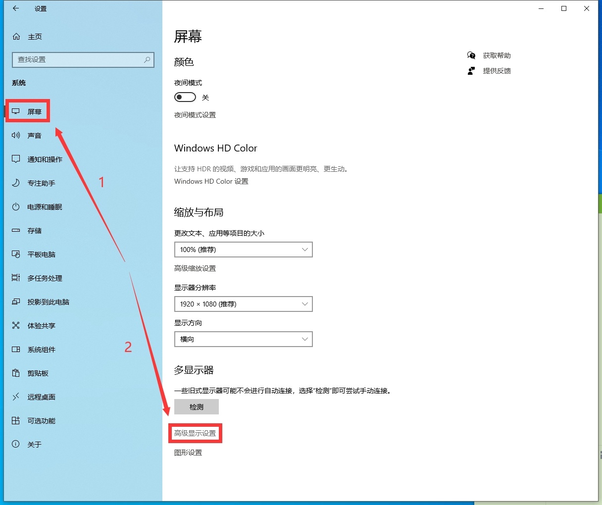屏幕-高级显示设置