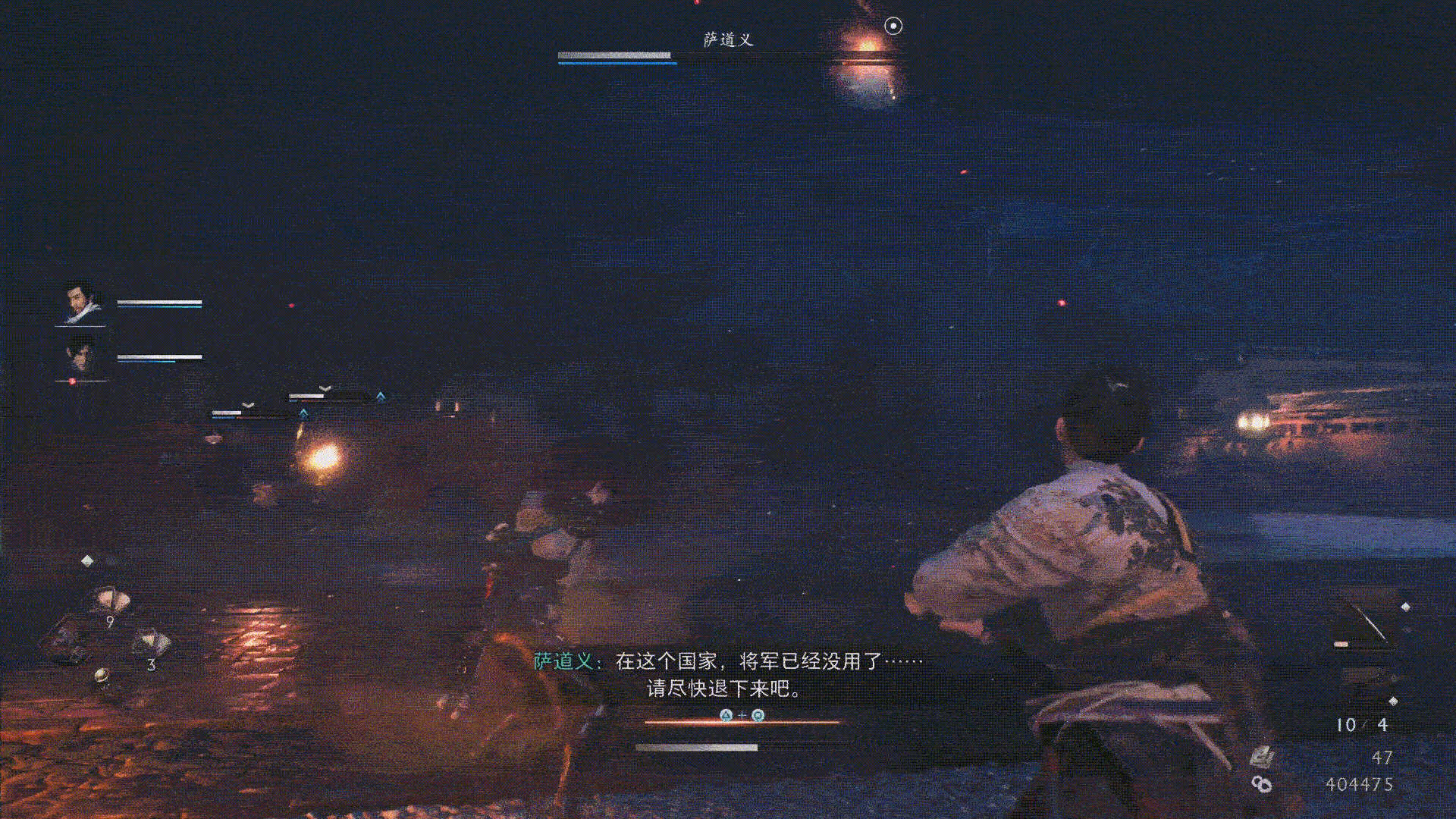 脫離了歷史的背景之後,本作的故事就是一個特別日系的故事。主角與搭檔分開,在找尋搭檔的過程中與其相愛相殺。基本上看個開頭就能猜到結尾,毫無亮點。許多任務的演出也很日系,我在幕府派的任務中挫敗了攘夷派的圖謀,阻止了一場襲擊。主角將那襲擊者BOSS打至跪地,既不是要抓他做星怒,也不是想要補刀。生生看着他喘過氣來,撂下狠話,扭頭跑路。這種日式演出在本作格外常見,不知放跑了多少可以殺了一了百了的雙方角色。給人的感覺還是挺憋屈的。