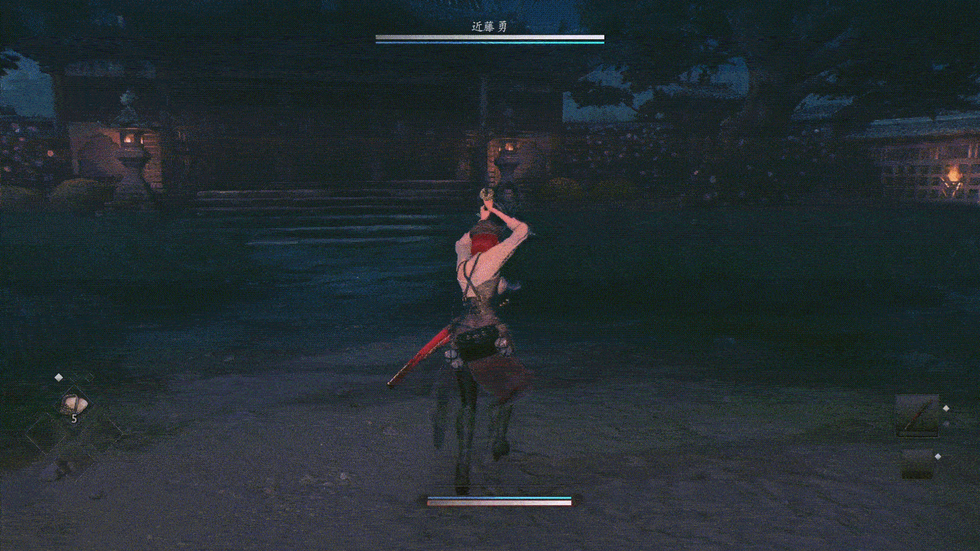 說了這麼多缺點,但本作的動作也不是一無是處。《浪人崛起》的特色,就是它真的去除了忍者組慣有的魔幻元素,沒有了各種造型各異,長相別致的妖怪BOSS,玩家在遊戲中面對的都是人型敵人。那麼如何給海量的人型BOSS做出差異化,靠的還是動作。遊戲中的BOSS除去一些體型特異的力士之外,大部分都還是正常人,有着自己的獨特流派,招式有着明顯的風格。每個角色的動作都有着足夠的風格差異,甚至同一角色能夠有兩三種武器,兩三套動作。必須要指出的一點是,敵人的動作有不少是反直覺的快慢刀,在普通難度石火判定嚴苛的情況下,石火按快硬直被打是家常便飯。是好是壞見仁見智,但就開荒來講體驗還是差一些的。