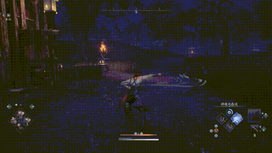 另外戰鬥還有一個比較難受的點,就是視角的問題。前面也說過,本作的BOSS基本上都講求多段連擊。在封閉的BOSS戰場景中,BOSS對你發動了一整套雷霆萬鈞,疾風驟雨般的攻勢,不論你是閃避躲開,石火招架,還是按住防禦硬抗,結果都會是被BOSS按進場景角落的“撤碩”。你背靠牆壁,攝像機有可能會卡在一個十分尷尬,什麼都看不見的位置。在我寫下這段話的時候,遊戲推送了更新,視角的問題得到了一定的改善,但還是偶爾會有問題。