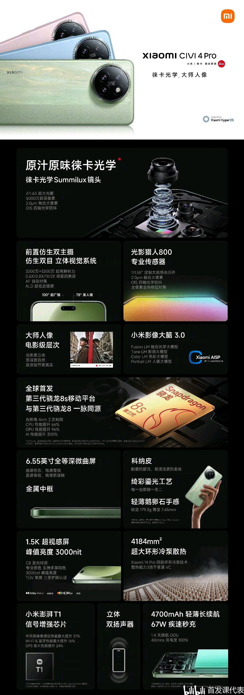 【小米 Civi 4 Pro,正式發佈:2999元起】