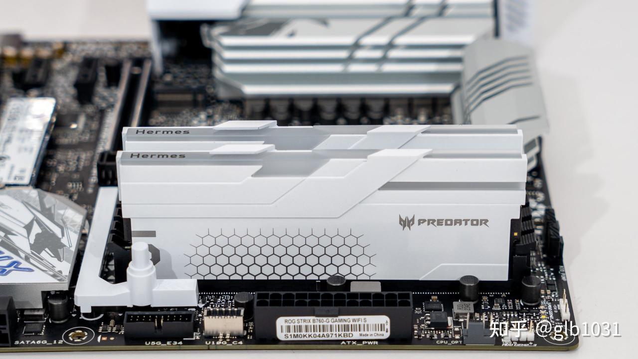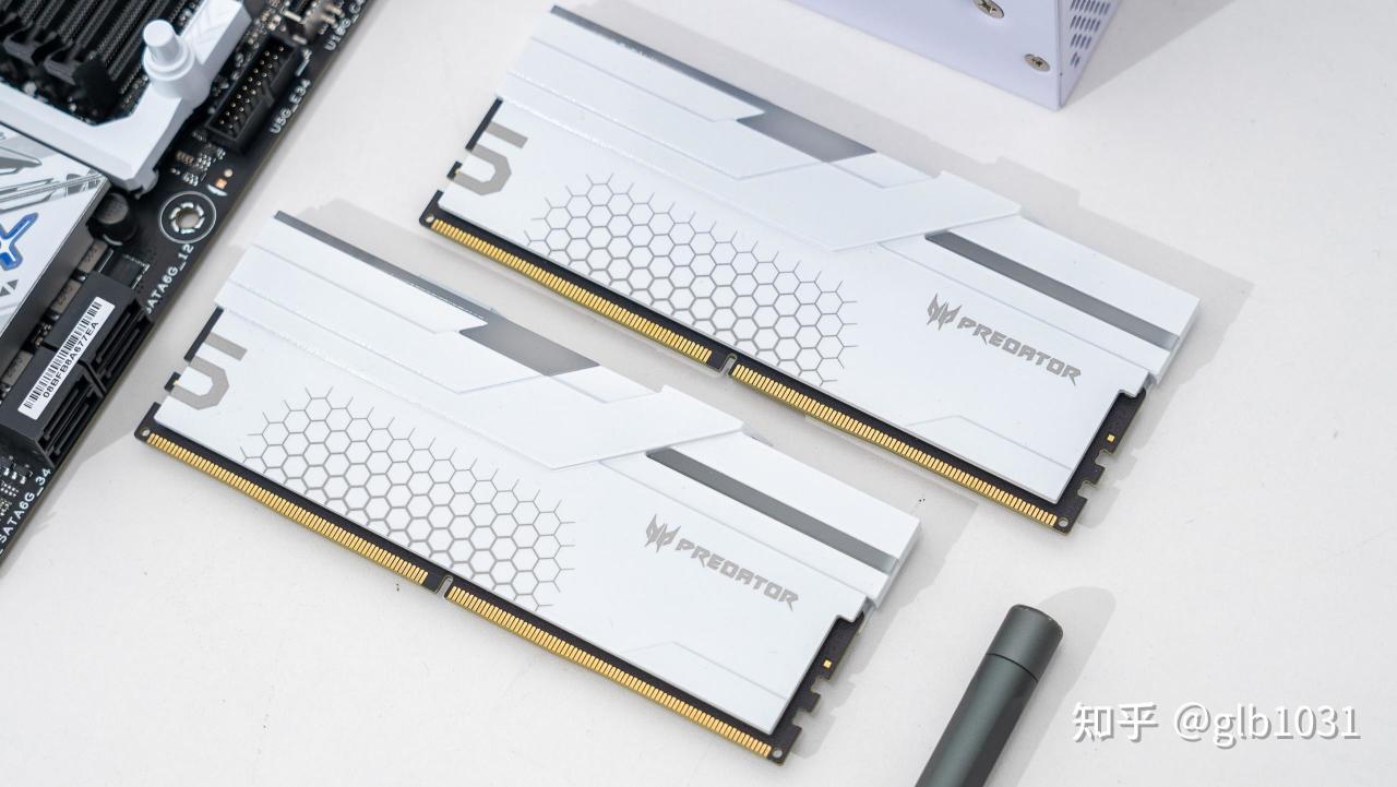 内存选择了白色的宏碁掠夺者 Hermes冰刃系列 DDR5 6800MHz 16GB x2,采用特挑的ADIE 颗粒。时序32-45-45-108。这款内存也有不错的超频潜力,这次也尝试手动超频实现8000MHz 看看。