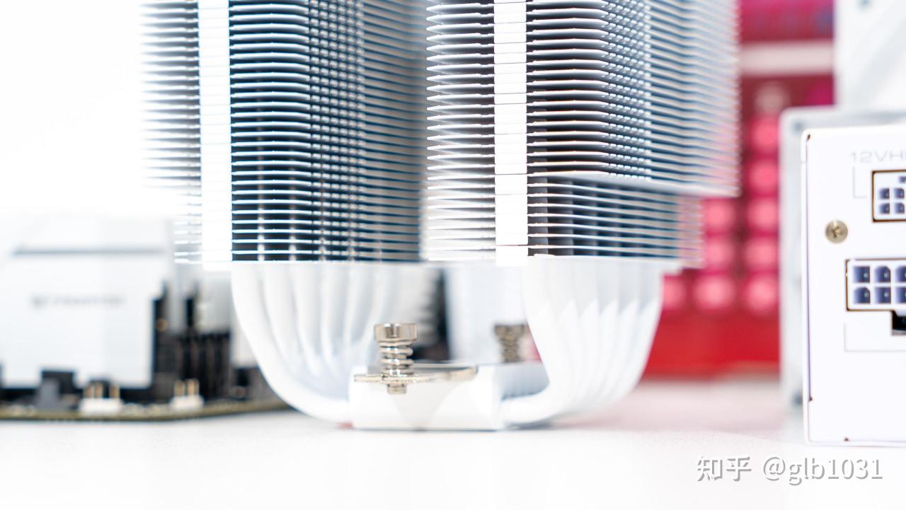 采用0.4mm 全铝穿FIN鳍片设计,白色的散热器表面采用了幻白化抗氧化涂层设计。而且虽然高度仅有135mm ,但是依旧考虑了搭配高内存以及主板散热盔甲的兼容问题。两侧都预留了一定空间来提高安装兼容性。