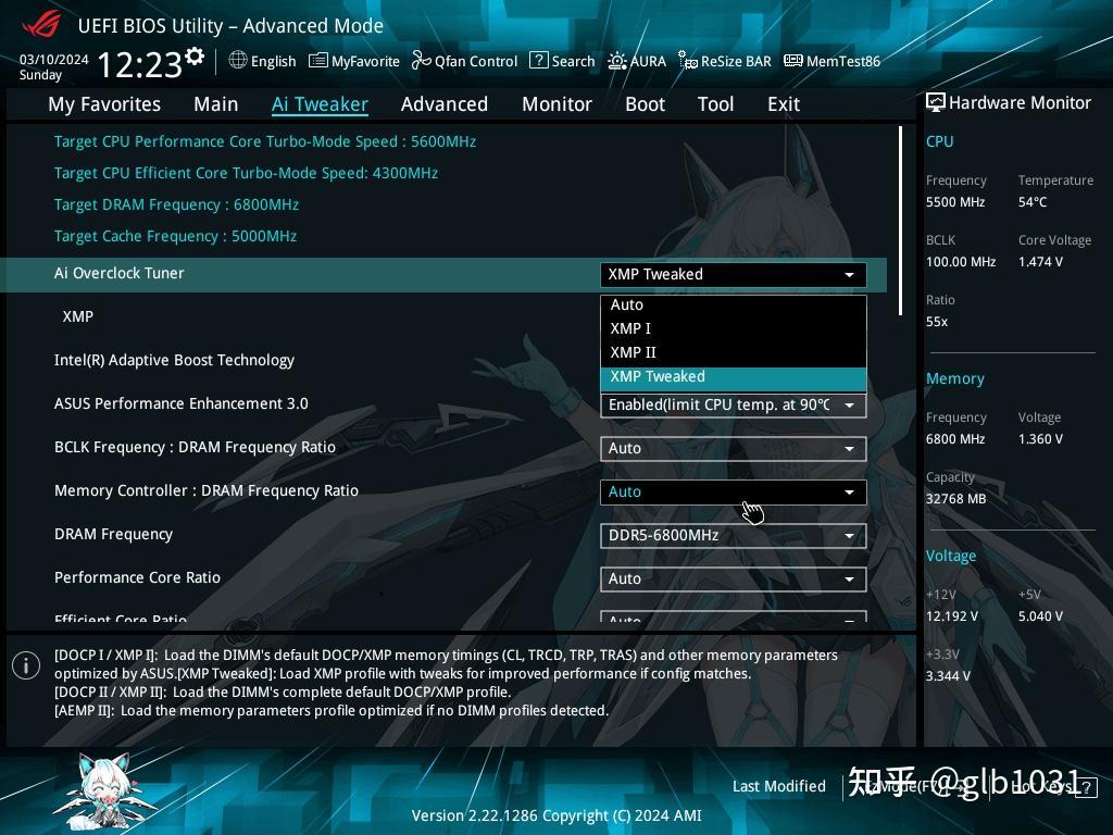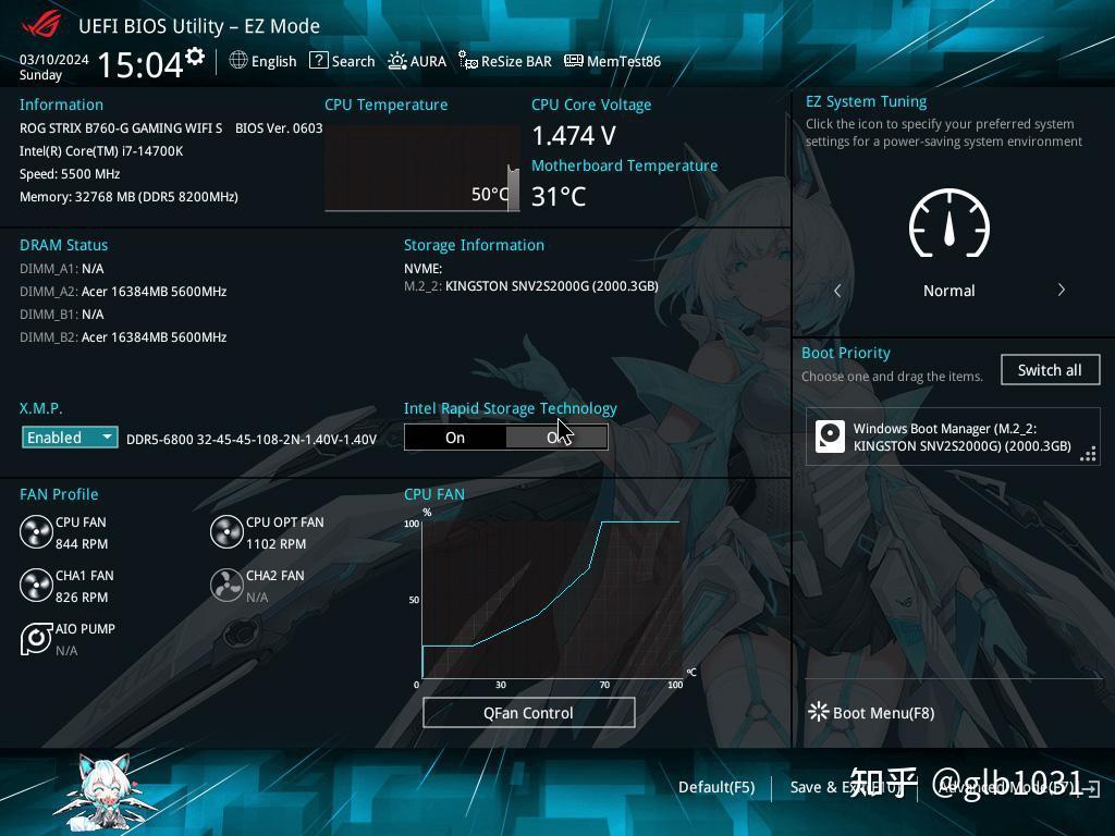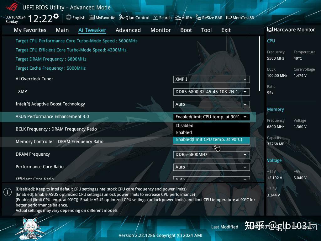 高阶界面方面,我一般会选择打开XMP 以及对于CPU 温度做出限制。毕竟现在处理器大多有些出厂即灰烬的问题,但是也注意到小吹雪S 并不没有对CPU 体质给出分数的功能,也期待未来华硕可以把这一功能下放给一下B系列主板。