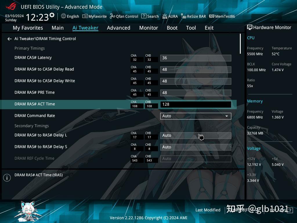 一键开启XMP 大家应该都很熟悉了,这里直接尝试超频吧。当然一键拉到8000MHz 想自动开机的话自动时序一定不会太好看,而且这样延迟也会很高。这里还是手动调整一下时序,默认下可以看到是CL32 ,手动调整为36-48-48-128,电压1.35V 。F10 保存等系统启动即可。