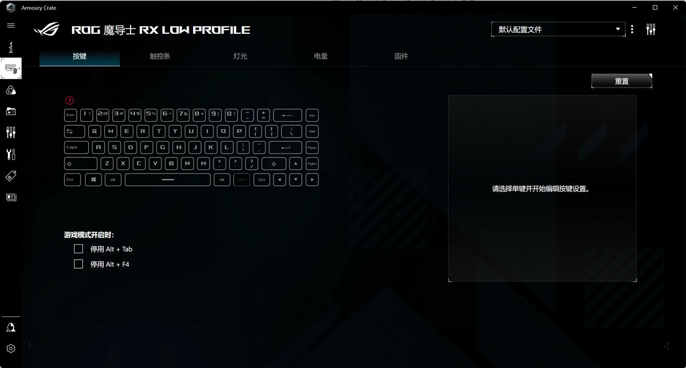 配置之后就可以在奥创软件中对键盘进行设置,华硕 ROG 魔导士RX LP 矮光轴RX 机械键盘支持AuraSync神光同步功能。此外华硕 ROG 魔导士RX LP 矮光轴RX 机械键盘还可以支持免驱录制宏按键设计,使用快捷方便。