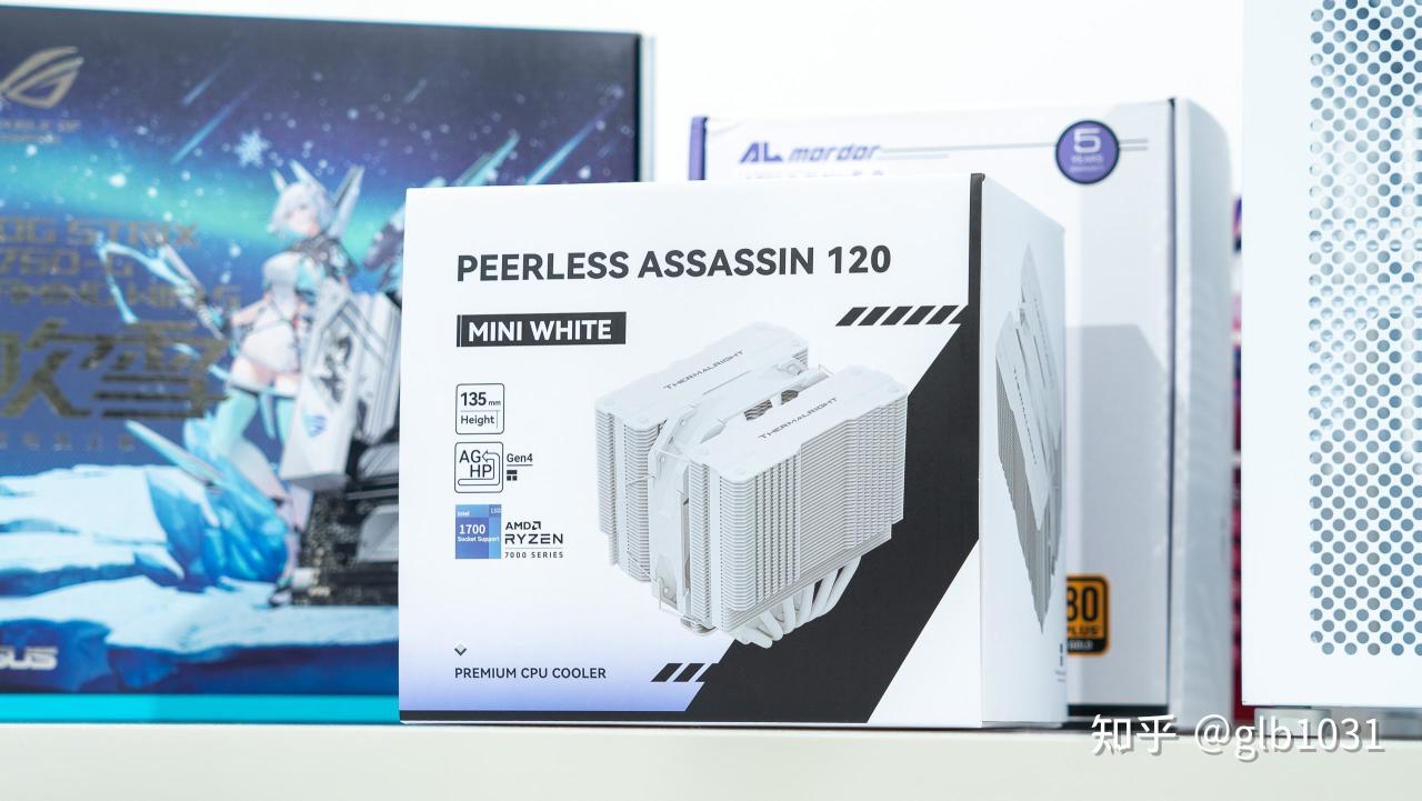散热方面是利民最近的更新的只有135mm 高度的PA120 MINI WHITE双塔6热管散热器。