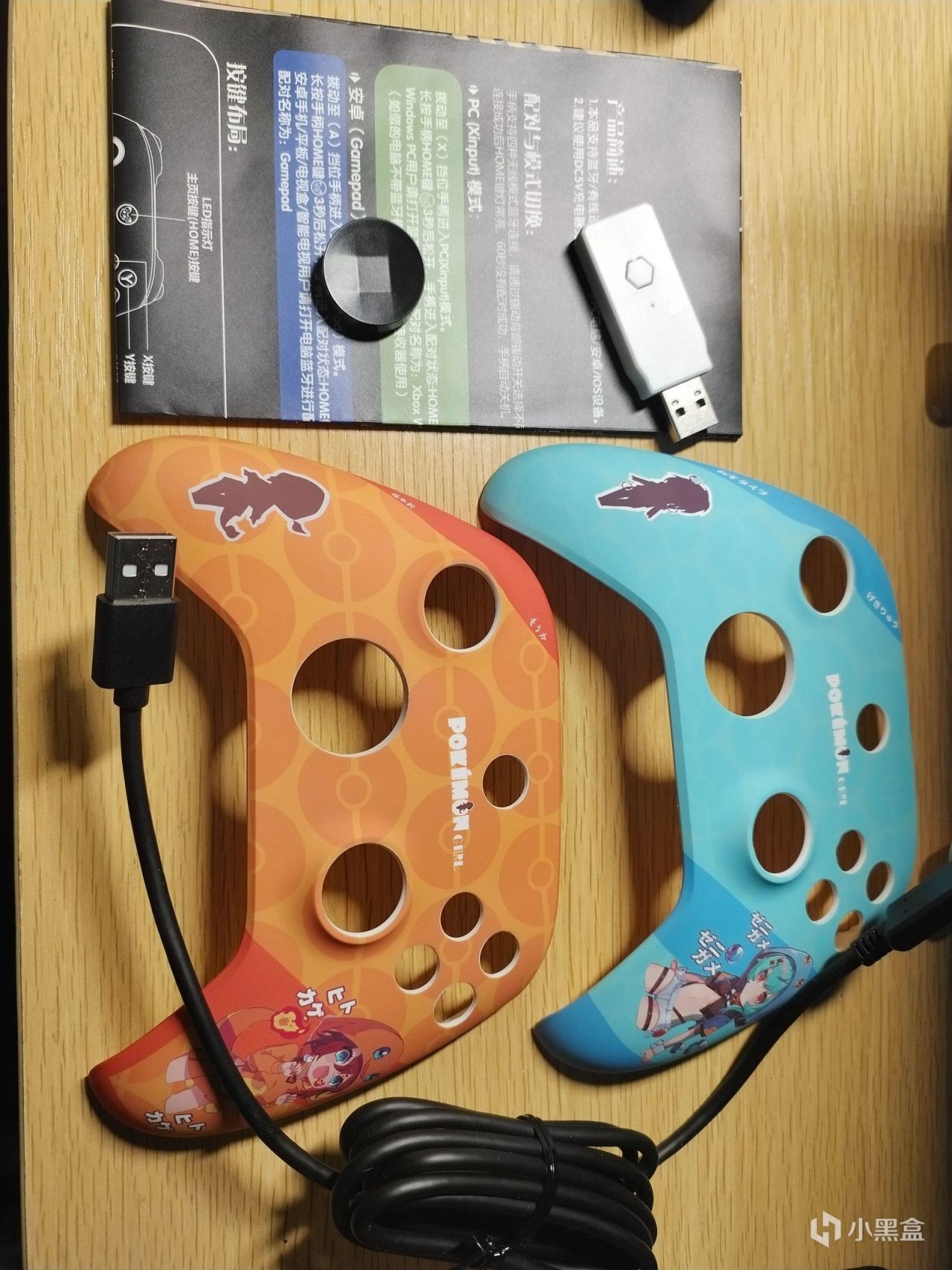 虽然只是两百不到的手柄,但配件还是齐全的。手柄本体、2.4g接收器、数据线、一个替换面壳、替换十字键、以及一个说明书。