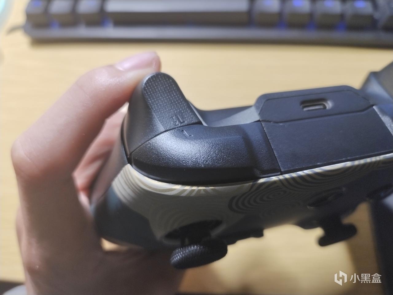 不过手柄终归还是用来打游戏的,握在手里也看不到外观呀!我在上手之后,惊讶地发现握持感和我的Xbox手柄相差不多,除了非常明显的重量。握柄背面和扳机键都有防滑纹路,不过这只是刚上手的感觉,打了一下游戏还是感觉到了一些区别。