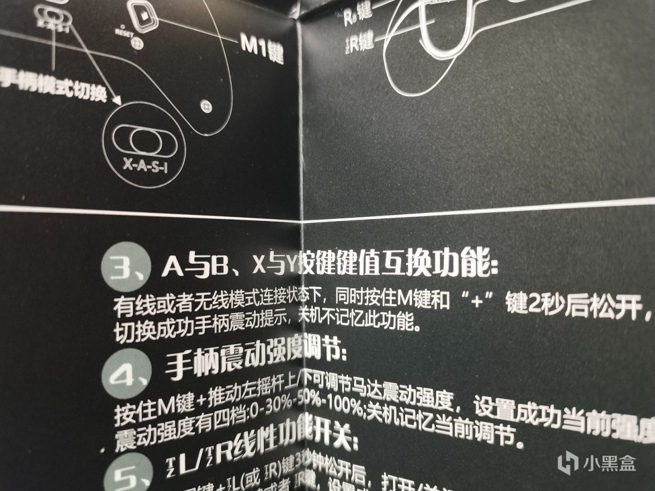 这款手柄还有一些我以前没尝试过以后大概率也不会尝试的功能,手柄背面有三个可自定义背键,中间的M键还支持一键连发和自定义宏功能,十字键和摇杆都可拆卸更换自己喜欢的部件,奕狐也是送了一个替换十字键。