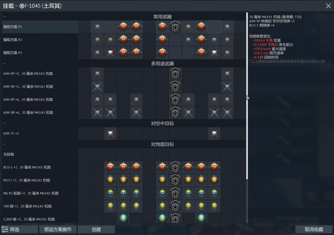看似有5種方案,但有用的只有標準和混合,由於空戰需要上高推薦用混合