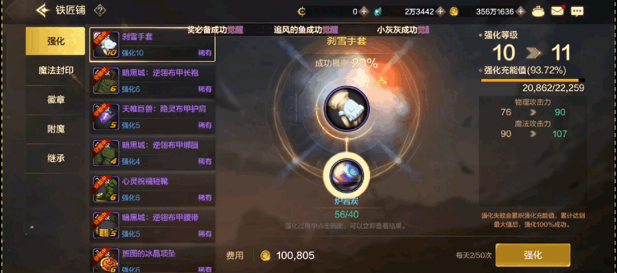 至於讓無數阿拉德勇士心碎的強化系統,手遊也做了大幅革新。目前裝備強化失敗後不會碎、有保底,曾經讓端遊玩家奢望的+13、+14如今已變得稀鬆平常,旭旭寶寶等主播更是將裝備拉滿到+20。