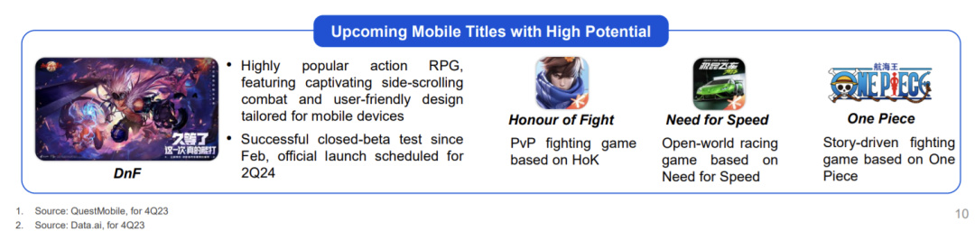 當然,喫得開應該也不是騰訊的最終目標,我認爲DNF手遊對他們來說有着更重要的戰略地位。畢竟它曾是騰訊首批端轉手產品,拿下過近6000萬的預約量,如今又被公司財報PPT特意提及……我們不難看出騰訊對它的重視。