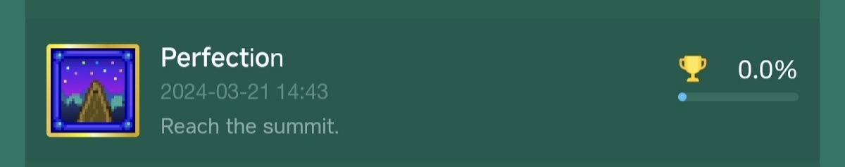 注意點:對於1.6版本之前就100%完成度到達過山頂的玩家,不需要繼續完成新版本更新後的100%進度,只需要進入山頂就可達成該成就