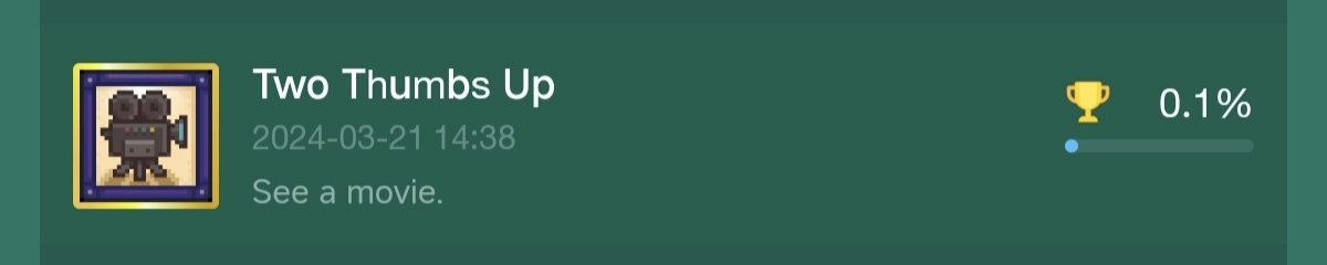 注意點:只需要購買票進入電影院就可達成成就,就算不看電影,買完票直接走出電影院也是可以的
