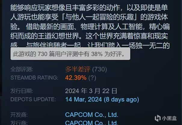 《龙之信条2》目前已经正式解锁了24h,目前游戏的好评率正在逐渐回暖,现在已是“褒贬不一”,相信不久后能逐渐解锁到“好评如潮”。