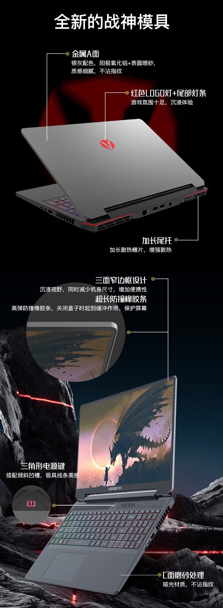 搭載酷睿14代i7-14650HX和i9-14900HX兩種可選的處理器,顯卡可選RTX4060和4070獨顯,16G和32G內存DDR5 5600MHZ(雙內存插槽),配備1TB的固態硬盤PCIe4.0 SSSD(雙硬盤插槽,2個M.2 2280硬盤位),電池容量60Wh,支持pd快充。