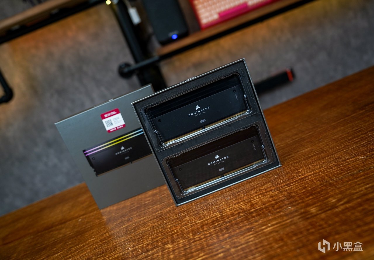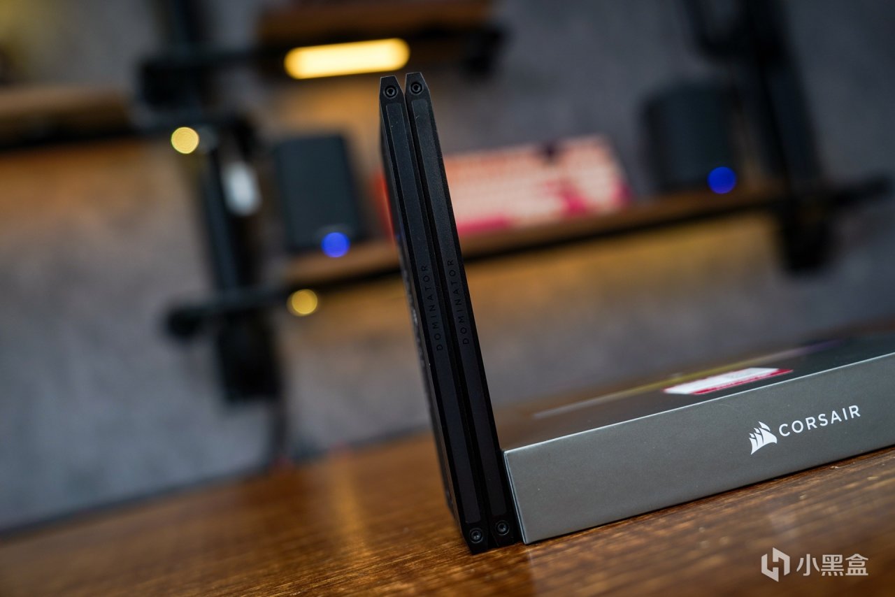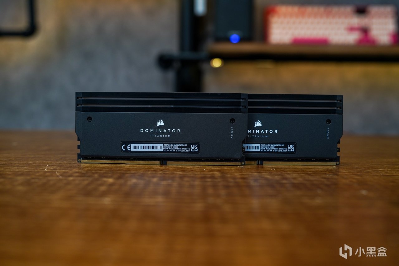 純色的典雅磨砂黑馬甲讓這套泰坦統治者內存在外觀方面也是盡顯低奢風格,散熱馬甲延續的是鉑統的寬大的特點,採用鍛造鋁結構、精密壓鑄工藝和陽極氧化處理。內存正面印有 DOMINATOR TITANIUM 的字樣,位於右側邊緣還有DHX專利以及限量版編號。DHX 是美商海盜船的專利散熱技術,通過鋁合金散熱馬甲及散熱鰭片和PCB直接接觸,再搭配大面積的導熱貼。內存採用特挑的海力士原廠Adie顆粒,10層PCB雙面顆粒設計,內存頻率爲DDR5-6400MT/s,時序爲32-39-39-76,電壓爲1.40v,單條容量爲16GB。