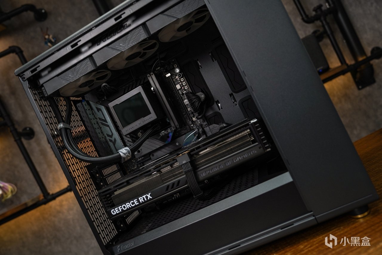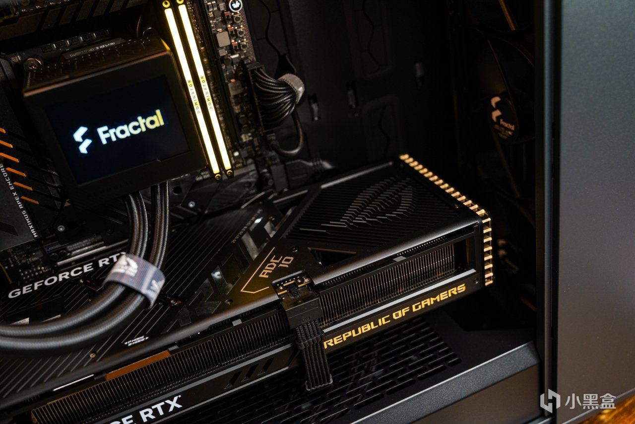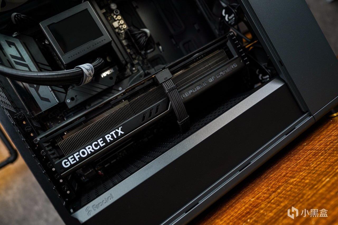 整體在安裝上基本沒遇到什麼太多的阻礙,畢竟這款是加大體積的North,兼容性上也早是預設好的,硬要挑的話,就是安裝類似這次的4080S這種大型顯卡是,因爲前置艙位採用了比較寬的裝飾擋板,在安裝長顯卡時必須把顯卡先延伸到機箱內部再進行安裝,這點和無遮擋的海景房的安裝又是另外一種體驗。