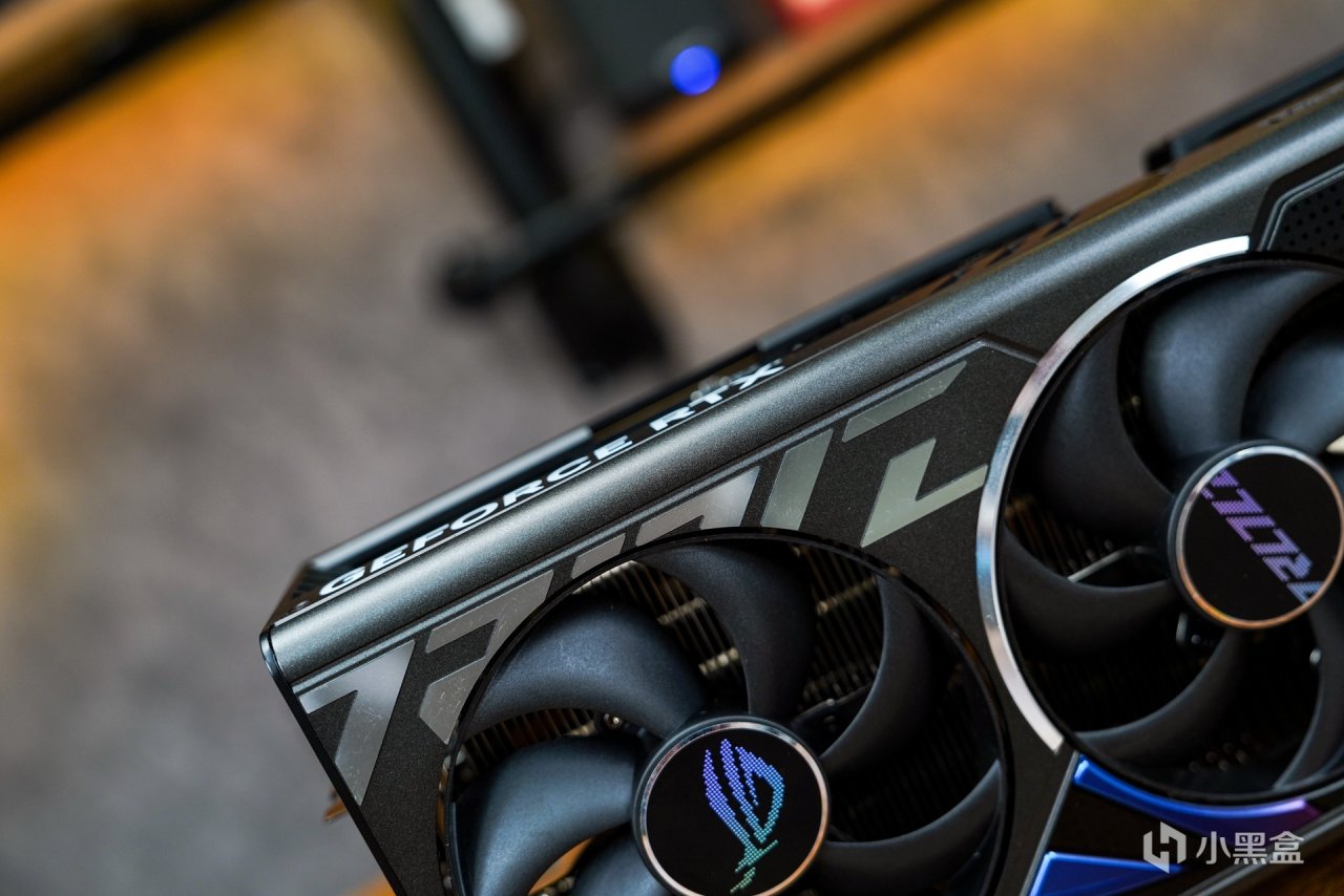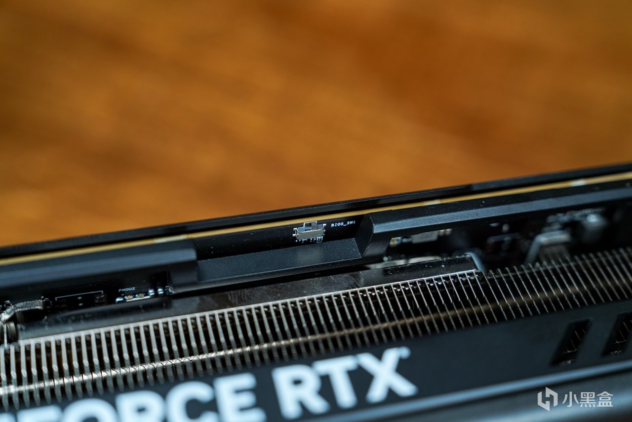 顯卡依然採用雙BIOS設置,顯卡的核心頻率:超頻模式頻率可達2670 MHz,加速頻率模式: 2640 MHz。爲了能更突出顯卡的氛圍特點,顯卡的前段帶有格柵式的裝飾罩,既可起到遮擋散熱熱管的作用,還設計了環繞式的 ARGB 燈裝飾,罩子上 ROG 全稱銘牌點綴。