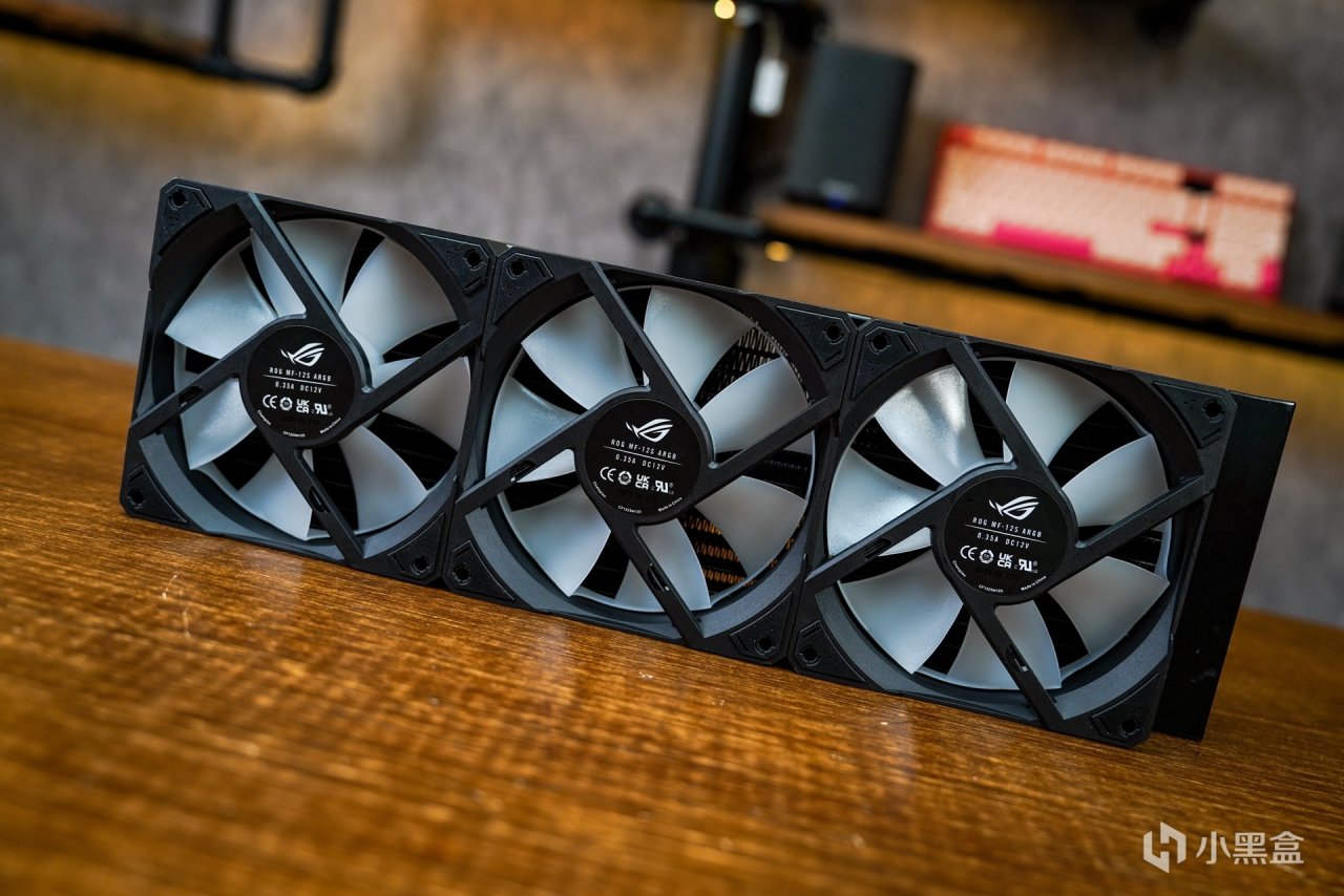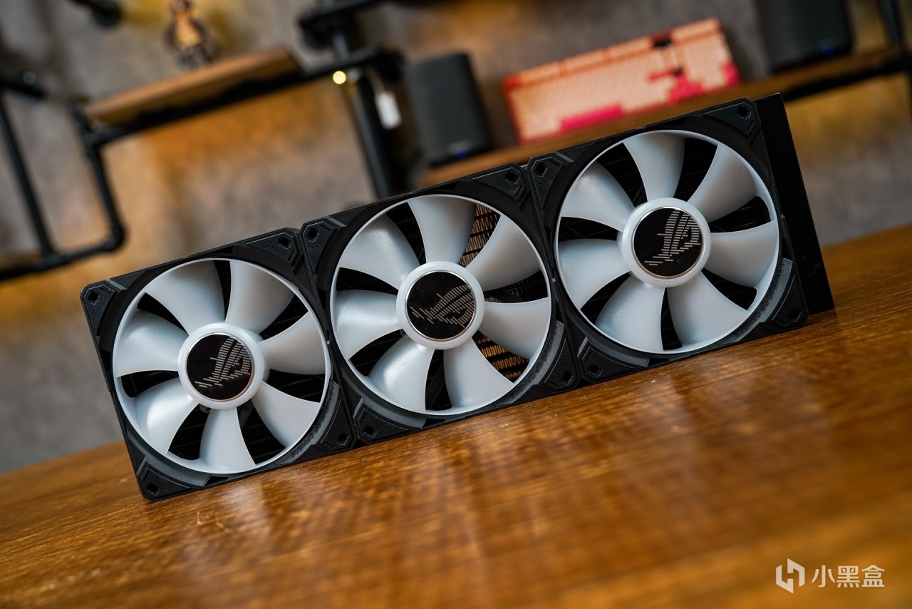 散熱規格方面,由三顆 10cm 7 扇葉雙滾珠軸流風扇組成,爲新升級 Axial-tech 風扇,具備更大更厚的尺寸,擁有更強的風壓,另中間風扇採用反方向旋轉設計,可減少空氣湍流,降低風扇噪音,依舊支持風扇停轉技術對應大尺寸。
