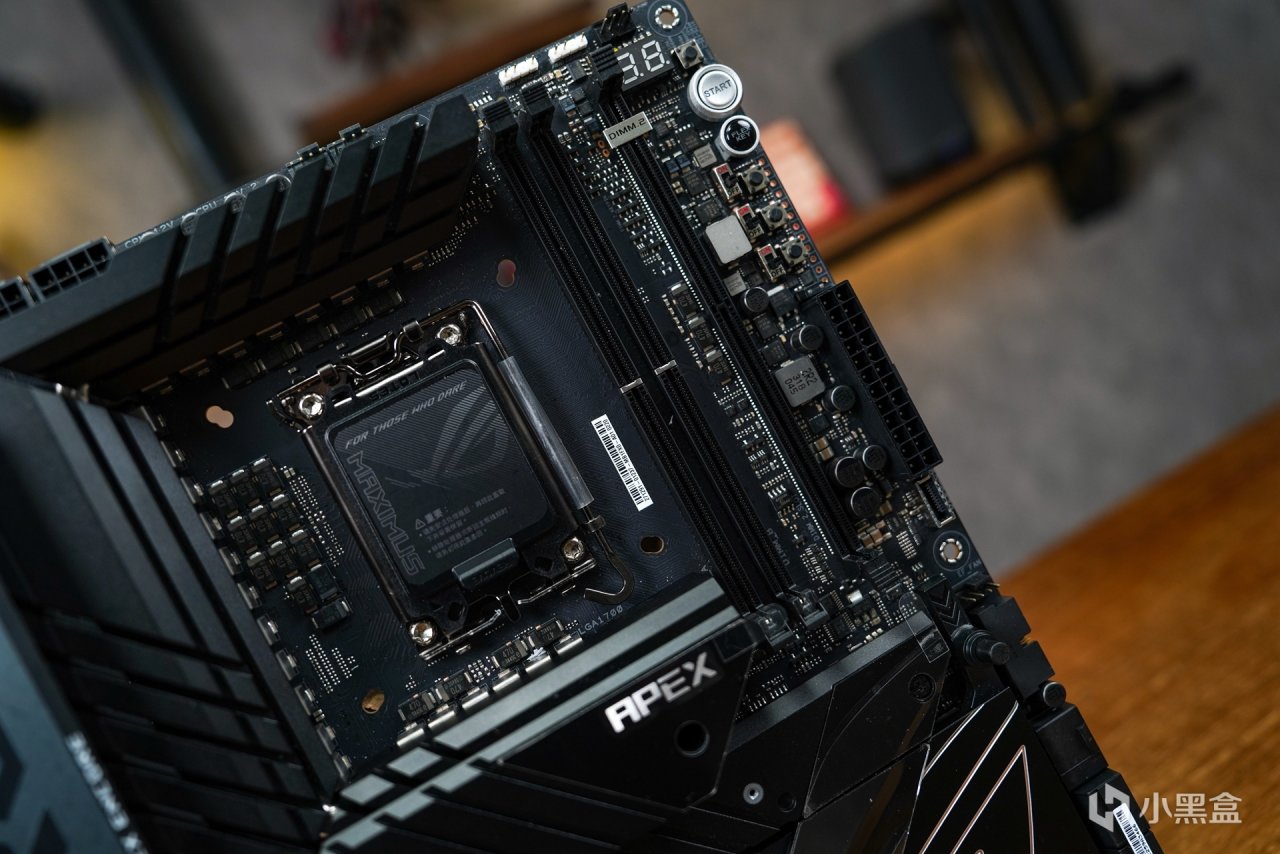 主板:ASUS ROG MAXIMUS Z790 APEX ENCORE,這款Z790 APEX可以看作上一代的ROG MAXIMUS Z790 APEX 的升級版本,主板的官方渠道頁面定位的標配處理器也是I7/I9起步,APEX系主板一直定位:主打進階超頻向的純血ROG系性能主板。或許這張主板在ROG純血系列裏並不算顏值最高的,但是在折騰超頻時,這張主板應該是當之無愧的NO.1。