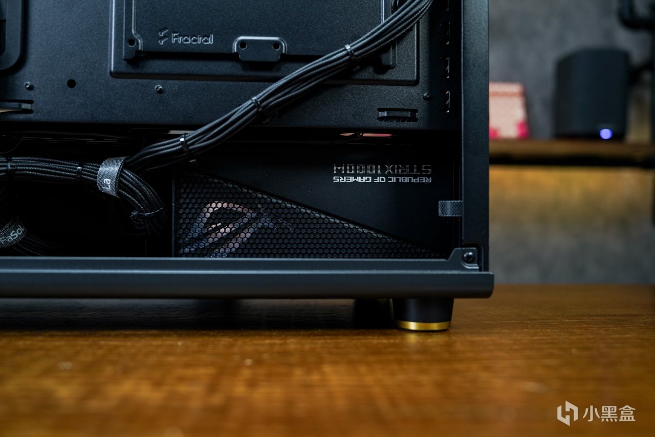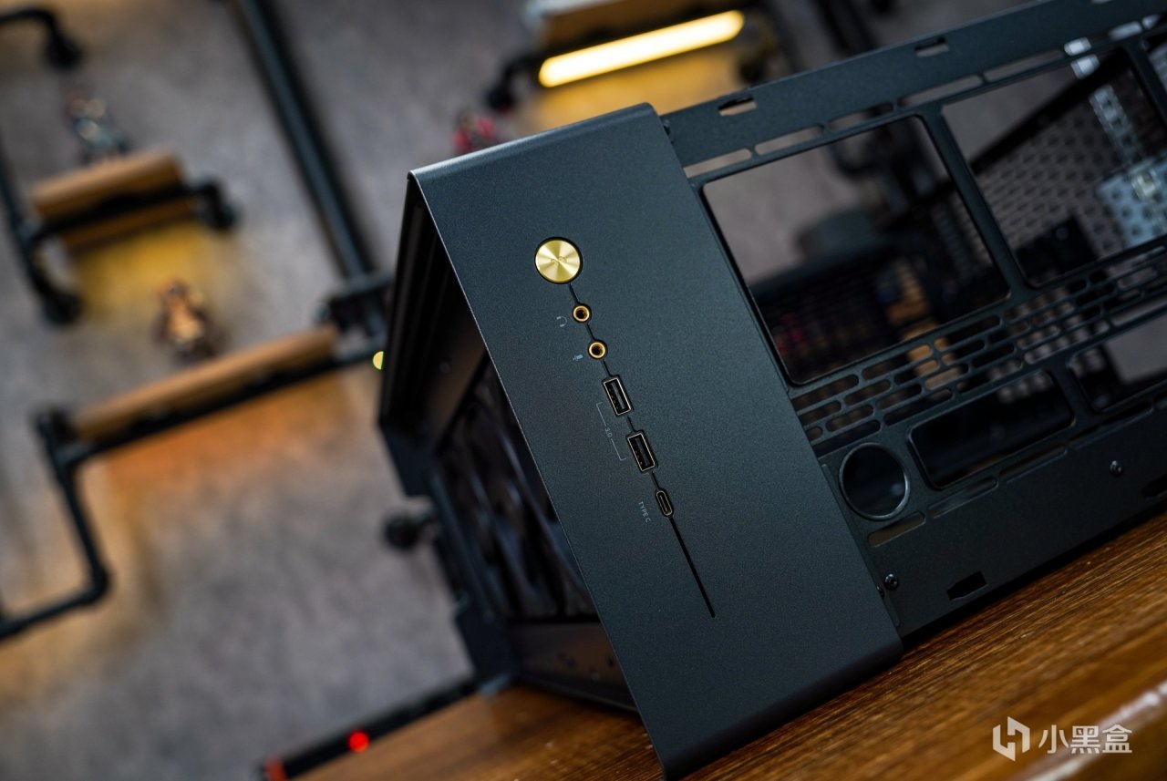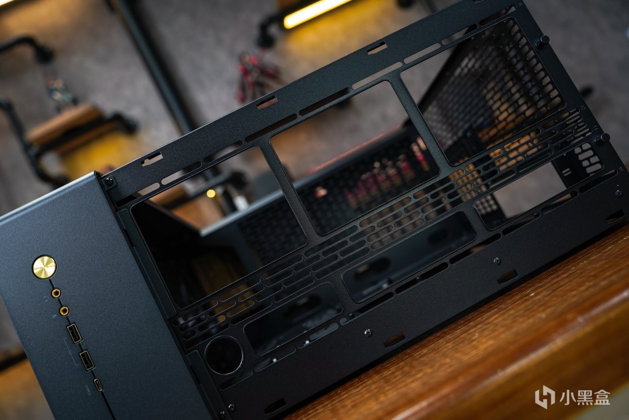 在箱體一些細節設計上個人覺得也是蠻不錯的,比如低調奢華的金色裝飾頂部I/O面板和底部腳墊位更能襯托出箱體的復古韻味。所以選擇機箱機箱時不能單純的看外觀,一些細節也影響到整個箱體設計的成敗。