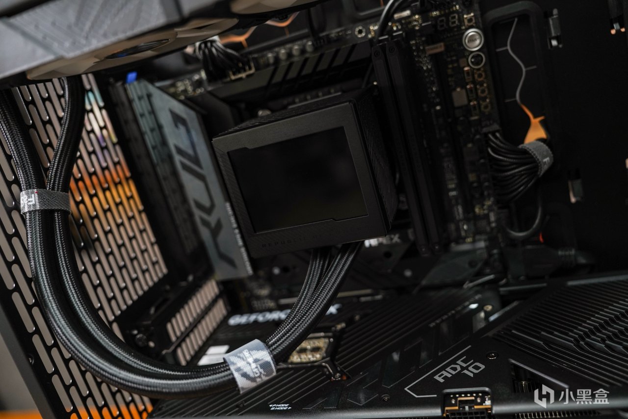 散熱器全黑化設計,採用Asetek 的第八代 水泵。這次冷頭的尺寸又做了升級,冷頭正方體設計風格和上一代的基本是相仿。