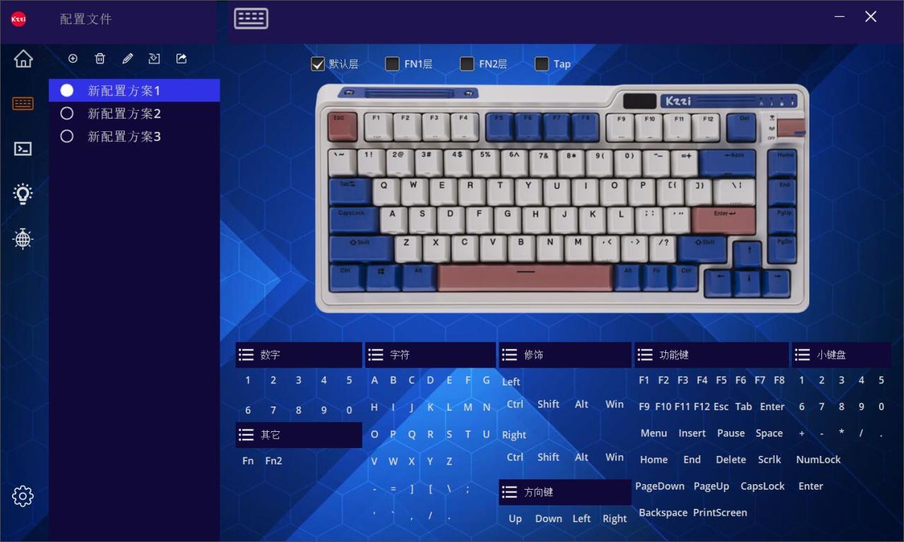 在珂芝的官网可以找到K75 Lite的驱动进行下载,在驱动内可以对键位、灯效、宏等进行设定