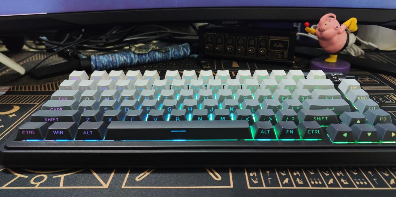 其实我本来就觉得K75(包括K75炫彩版)的元素堆砌的太花哨了些,这次的Lite在一些设计上做了阉割,再加上侧刻版本的键帽,反而让我觉得好看了不少。