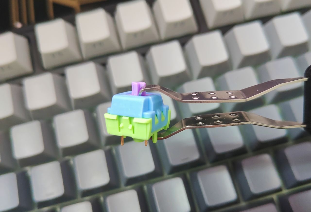 轴体我手中这把搭载的彩虹轴版本简单来说是一种快速线性触发轴,42gf的触发力度会比常见的45gf稍轻,18mm的单段弹簧,1.2mm的导通行程让触发更快,也会让轴体更加稳定,不过相应的声音也就没有那么HIFI了,更适合有一定竞技游戏需求的玩家。
