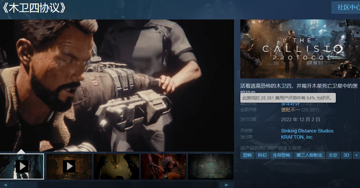 對於《木衛四協議》來說,移除 D 加密技術可能意味着遊戲在 PC 平臺上的運行將更加流暢,減少了因爲加密技術而導致的性能損耗;目前該作在 Steam 上的評價文“褒貶不一”,好評率僅有 64%: