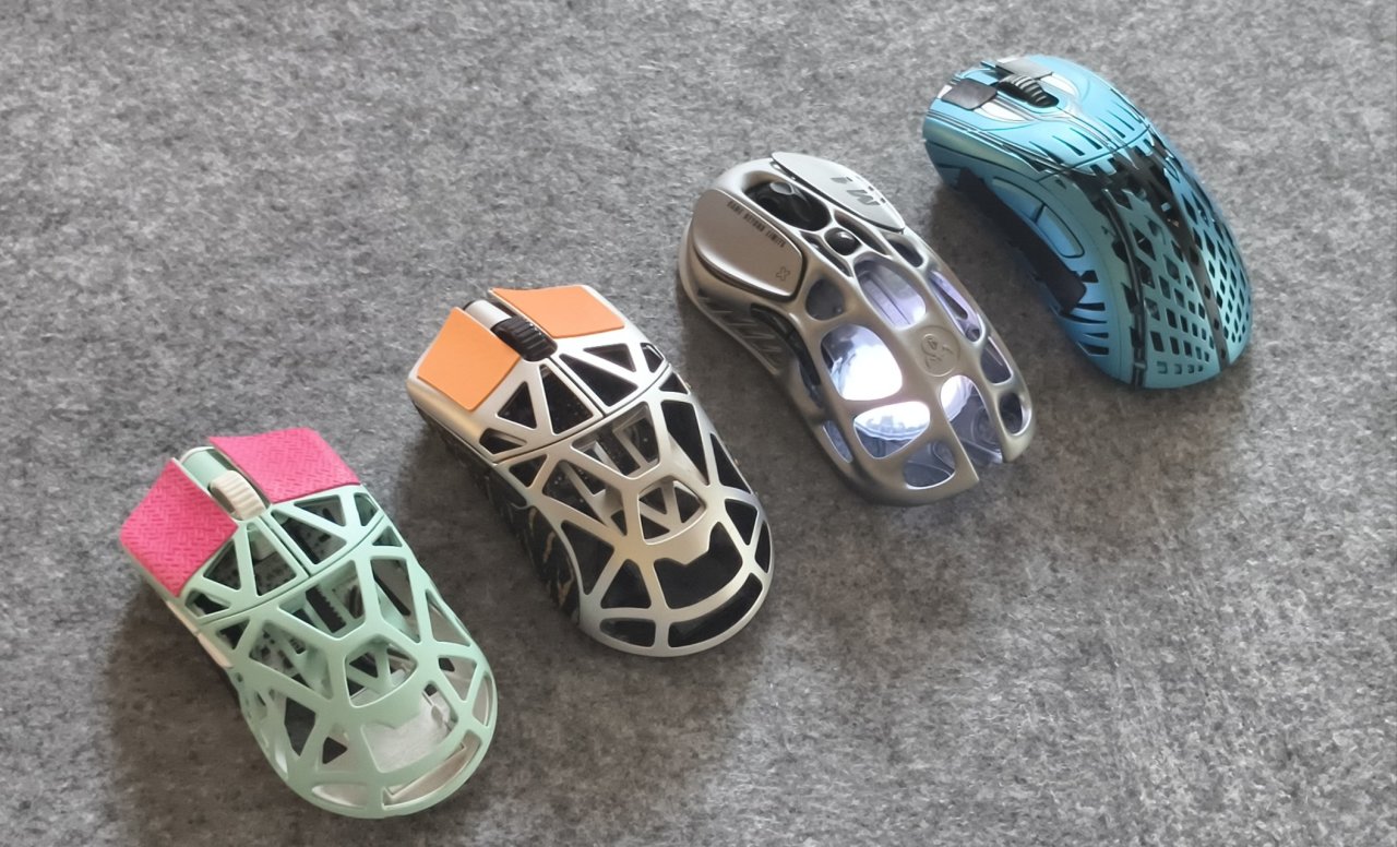 这款鼠标总共有三个款式可选:分别为液态黑,星际银,战损灰。其中液态黑是塑料所做,另外两个色则都是镁铝合金版本