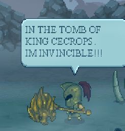 而在很久以後,蜥蜴人侵略了雅典,在混亂中,一大批雅典士兵並沒有抵擋蜥蜴人,而是選擇去趁機盜竊財富,他們溜進了刻克洛普斯的陵墓。