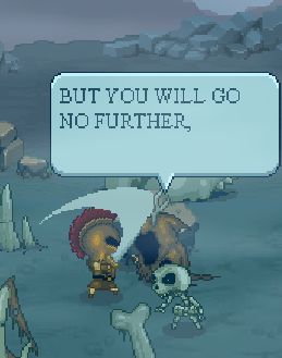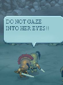 在雙刃戰士殺死了攔路的亡靈後,那隻亡靈卻讓雙刃戰士小心美杜莎,然而身心俱疲的雙刃戰士卻沒有注意到這句話,他們繼續向前推進。