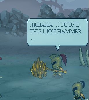 (翻譯:小兵1:哈哈哈,我從刻克洛普斯的陵墓裏面找到了這個獅頭錘