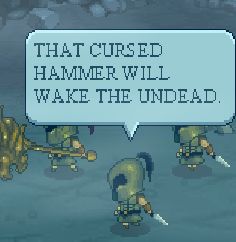 小兵2:你個蠢貨,你這個舉動會害死我們的(你註定了我們的命運),那個被詛咒的錘子會喚醒亡靈!)