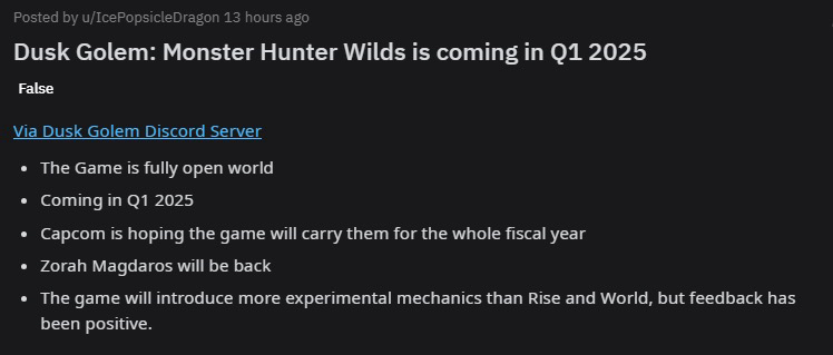 对于此次的爆料给位还请保持理性的态度看待,虽然该爆料人之前准备透露很多卡普空的游戏,但还是要等官方的消息放出。