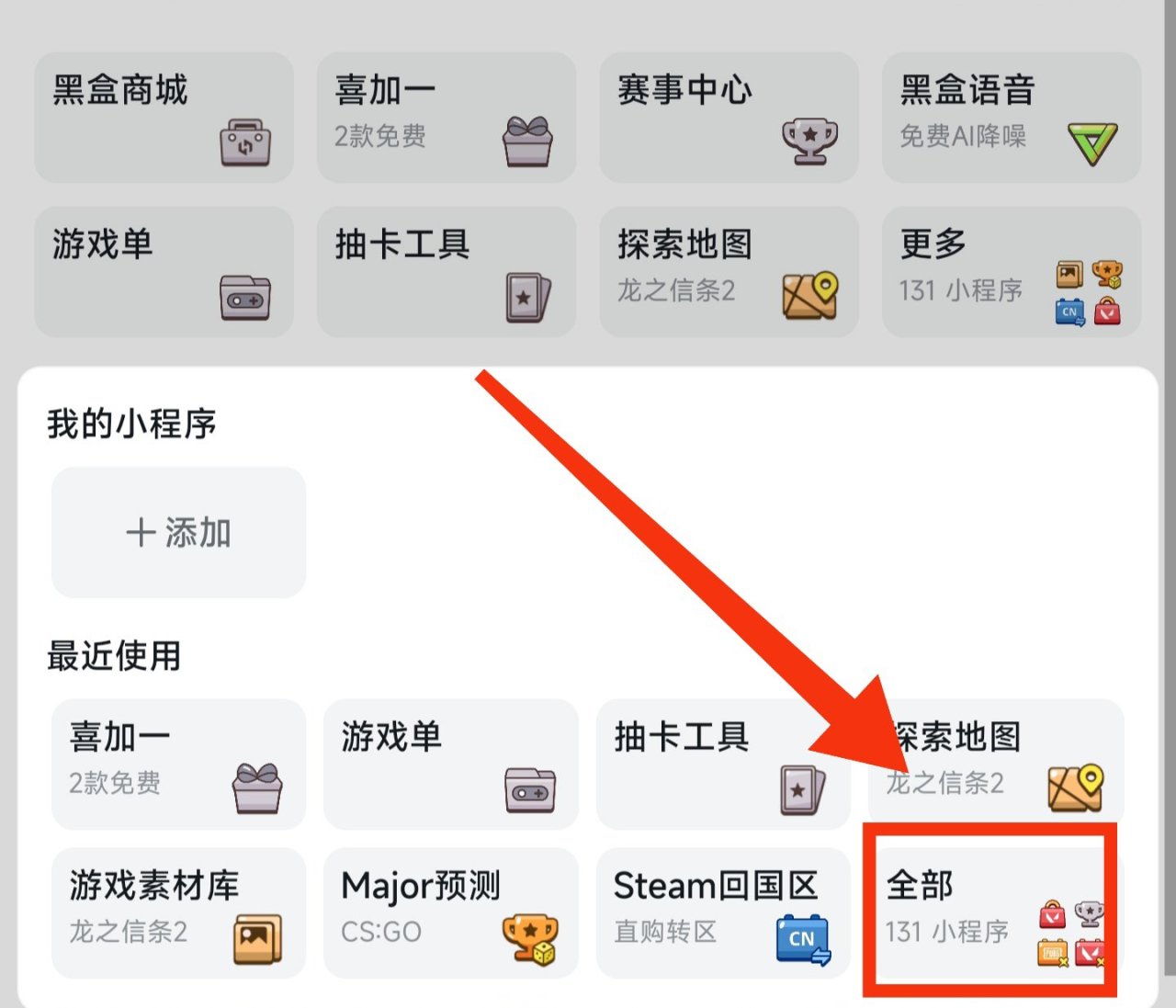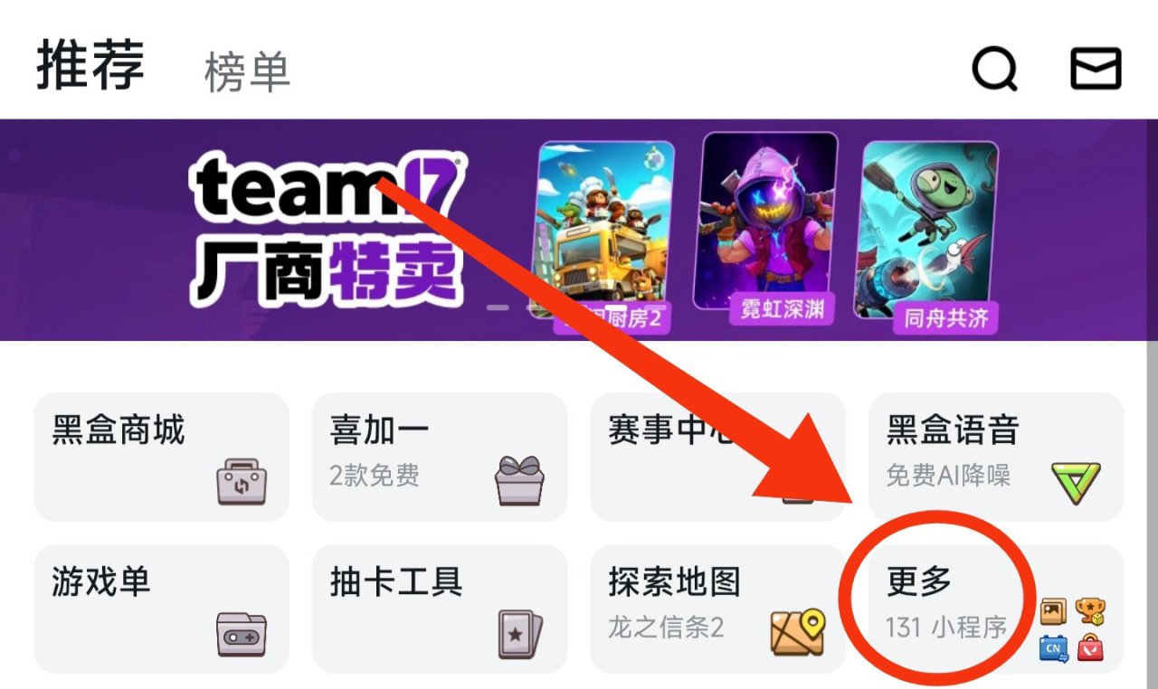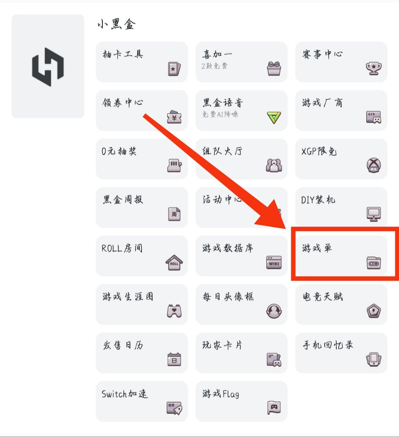 4.在“小黑盒”栏目找到“游戏单”,也可以顶部搜索栏直接搜索“游戏单”