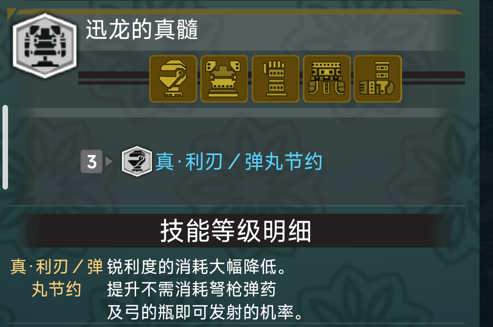 不過雙刀不一定非得迅龍套,自帶技能非常優秀的慘爪龍套也是很好的選擇,套裝效果則是剛刃研磨,磨刀之後一段時間不消耗斬味,而且套裝效果可以同時用慘爪龍和兇爪龍裝備搭配,更爲靈活。因此雷顎2+慘爪2+兇爪1也是一個很不錯的方案。