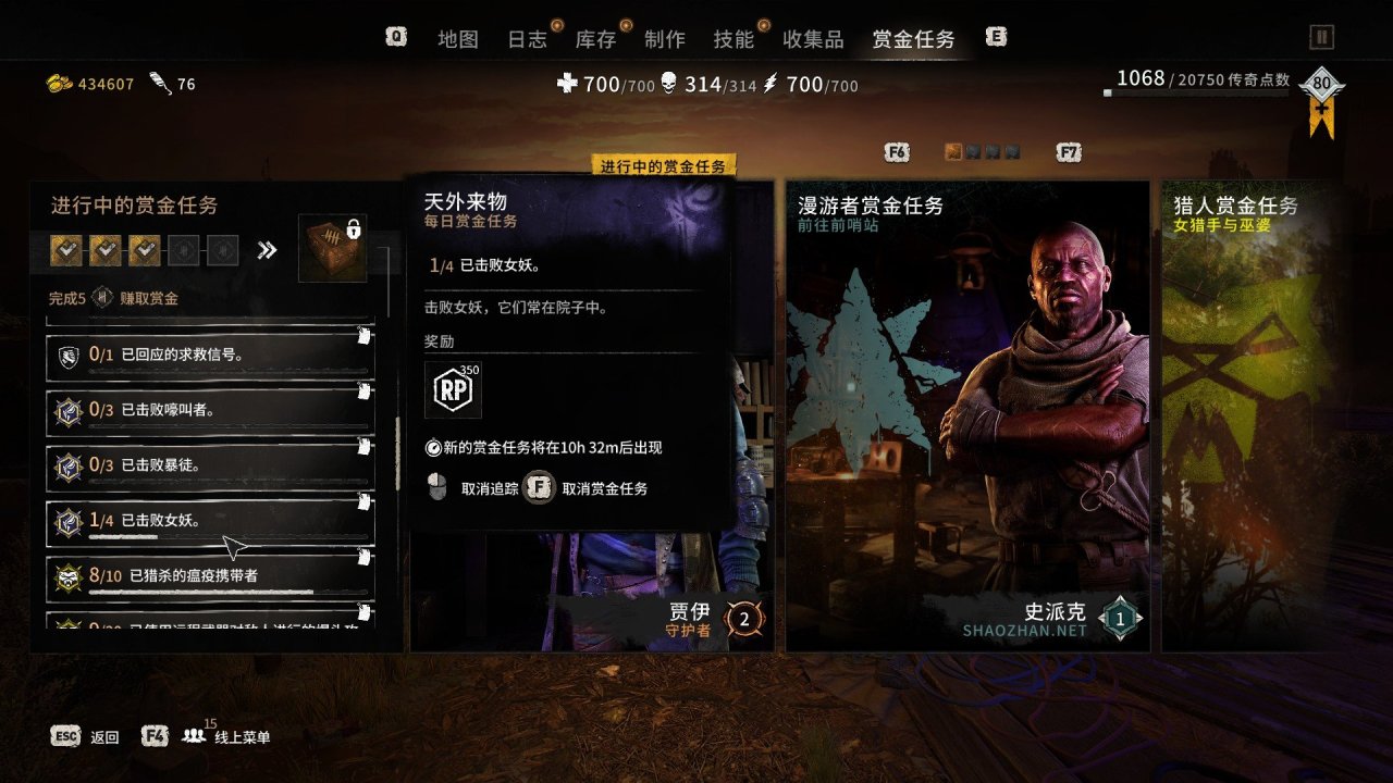 进入该界面进行追踪后就可以在游戏过程右边看到。另外如图还有漫游者哨站是一个官网,正常电脑浏览器就可以进,里面有任务可以接并且领奖励。