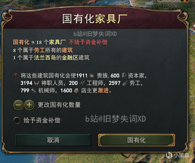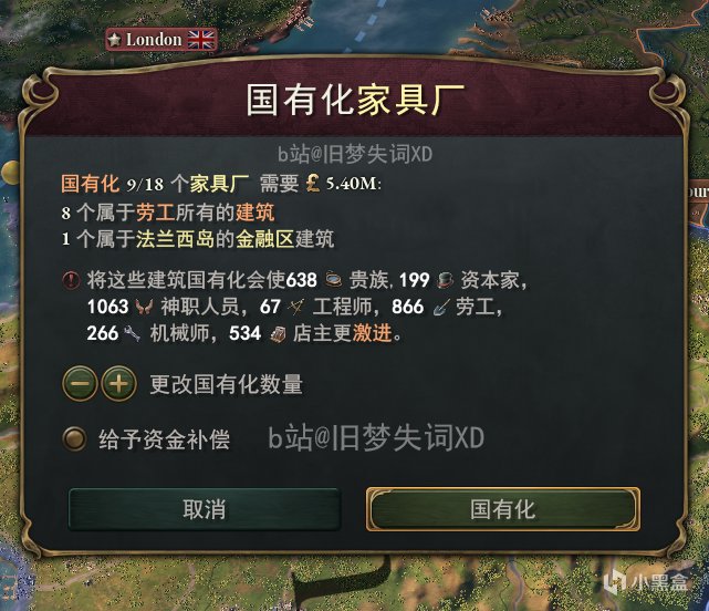 玩家也可以國有化國內的建築,無論是工人所有制還是私人所有制。無論你是否支付賠償,都會激怒他們,只有激怒程度的區別。