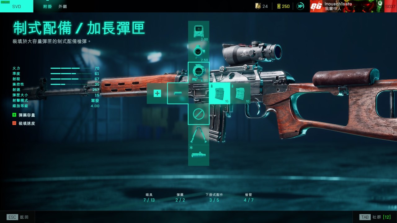 初始武器,配件多可玩性强,标弹弹容很大,有很强的收割能力