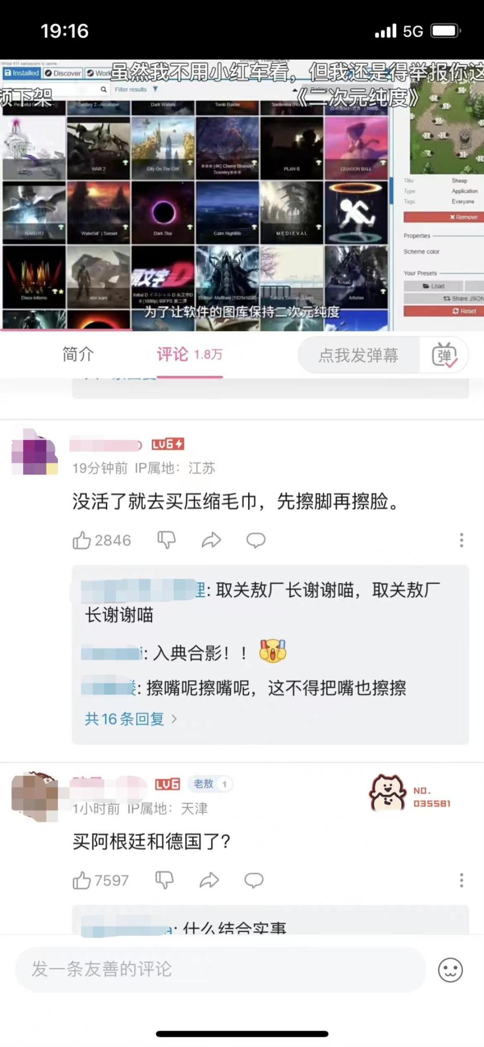 由于我吃到这个瓜的时候有点晚,视频已经被敖厂长火速下架了,但根据网友和其他博主反馈,似乎视频的内容是在揭秘《WallpaperEngine》壁纸软件背后的敏感内容以及审核压力。