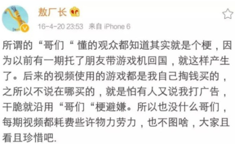 但当敖厂长宣布回归B站后,第一期视频却是给某手机做代言,就感觉一切都开始变味了,我也就很少再看他的视频了,哪怕他偶尔有几个闪光点出现,但在视频内容如此丰富的今天,也很难让我注意到。