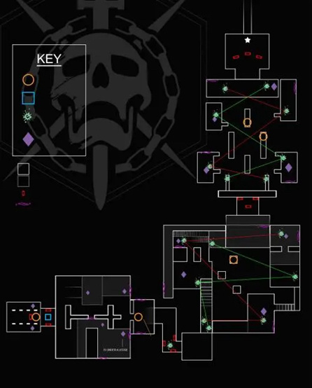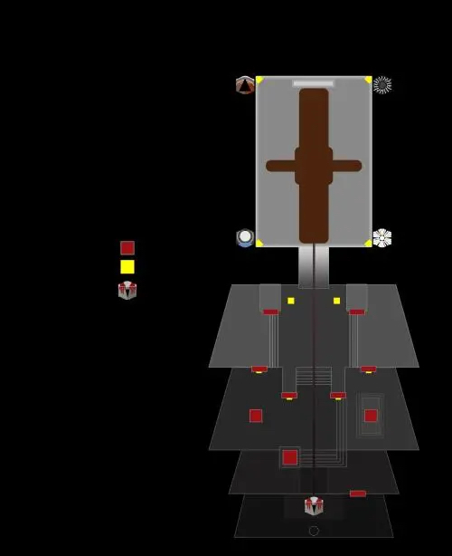 本關存在3種神器即聖盾、棱鏡、傀儡球。聖盾使用機制同vog在格擋時可以暫時消除“瀰漫暗影”;棱鏡可以破除白盾,擊殺白盾怪可續上“終端回聲”團滅倒計時;傀儡球可以使用手雷鍵破除傀儡的無敵。(注意:神器在丟棄或者存入機器時會獲得28s的“抑制回聲”在此期間不可拾起神器)地圖中會生成一組符文怪,兩邊各一隻,將其擊殺則會掉落3個圖案,魑魅符文怪掉落的圖案需要不持有神器纔可看見,傀儡符文怪掉落的圖案則需要持有神器才能看見,兩邊圖案進行匹配找出其中相同的圖案,即可在門處射擊正確圖案前往下一區域。開門後可以在機器上上交所有神器續團滅時間。除了開門時需要打1組符文怪外,後面的3個區域都需要打2組符文怪,射擊兩個正確的圖案。