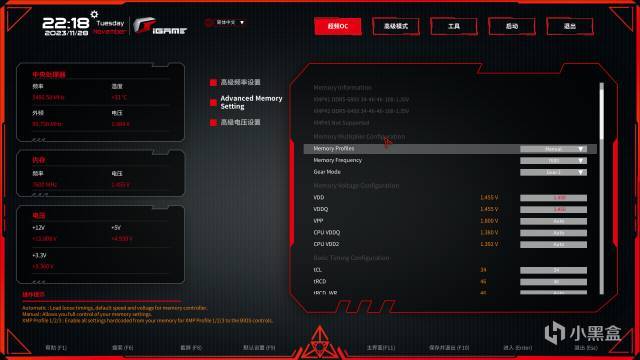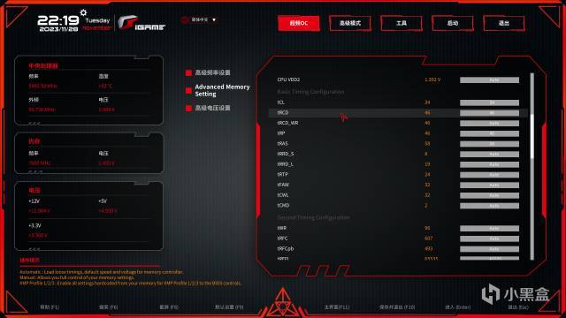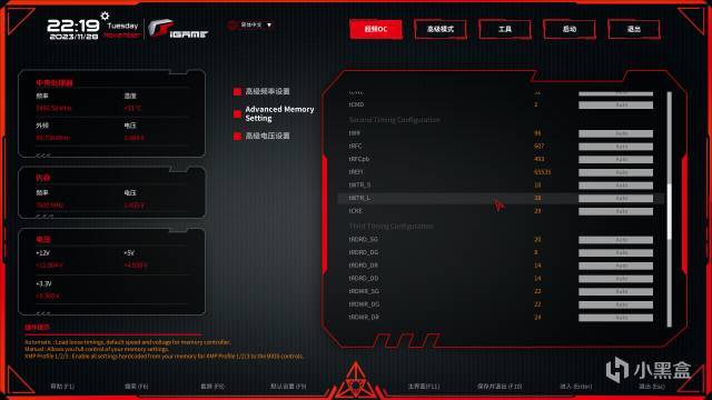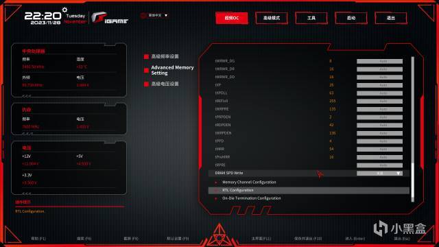 内存超频,电压 频率 时序设置起来都比较好上手,第二时序/ 第三时也可以设置,RTL / ODT以有开放设置功能。