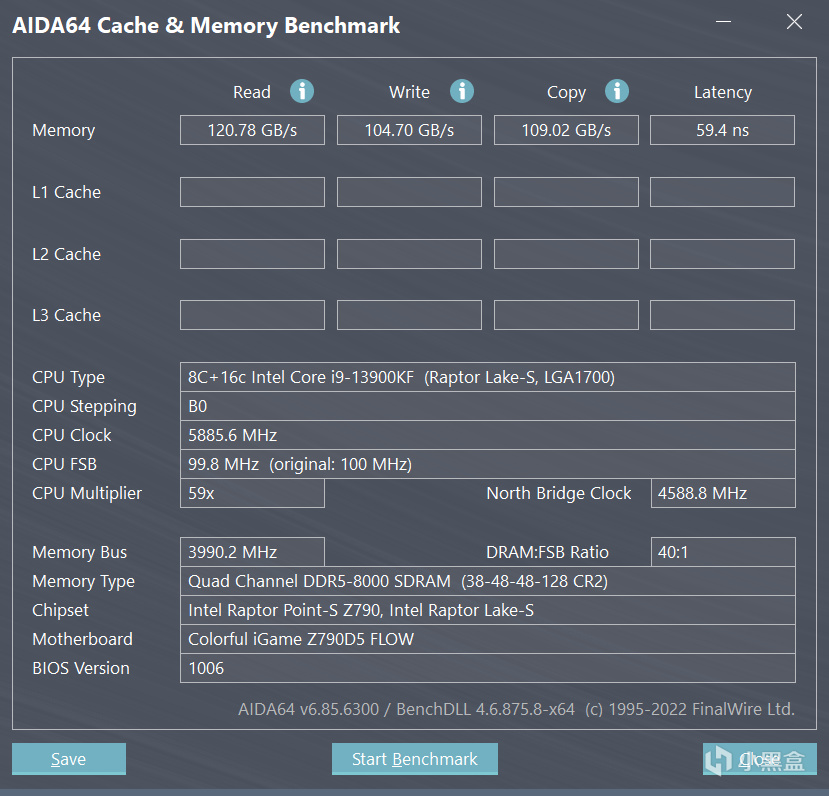 主板内存设置时序为34-46-46-58,电压1.45V,TM5过测,没调小参的情况下,内存效能和延迟表现都比7800频率更好一点。