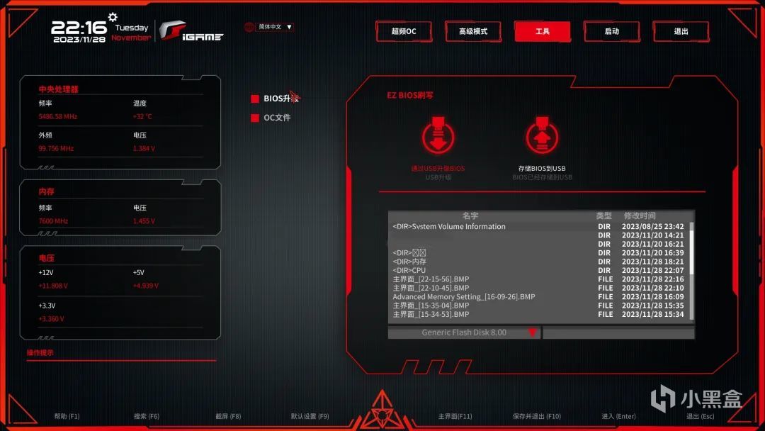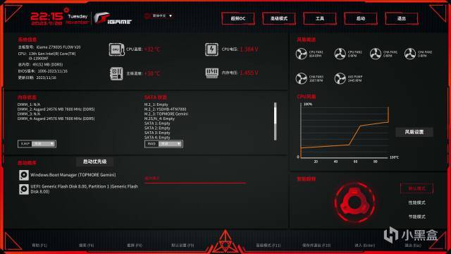 大家比较担心的BIOS,实测用起来至少有75分水平,基本功能和超频这些都没问题,上手起来也比较简单,对新手也比较友好,BIOS和超频性能相比七彩虹以前产品进步很大,可以看到他们越来越用心做产品。